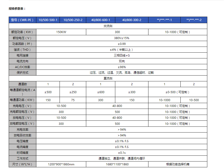 • 可將能量回饋至電網:同時具有電源、負載兩種特性,可實現用戶各種復雜的充、放電工藝控制與管理。
